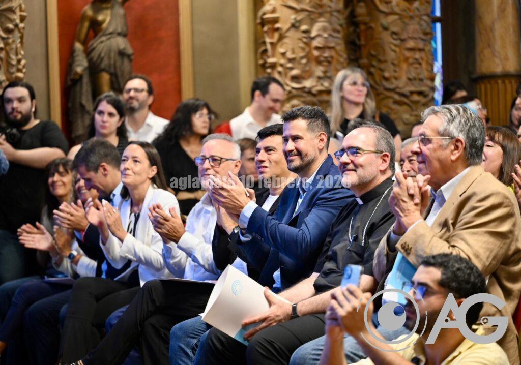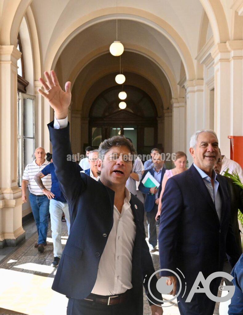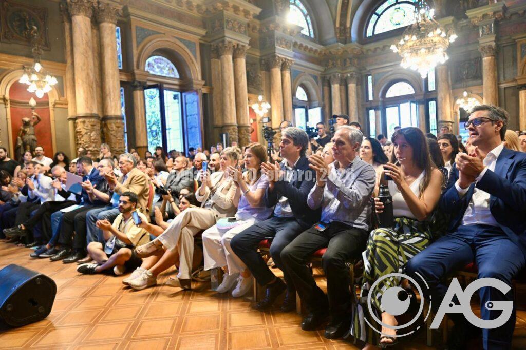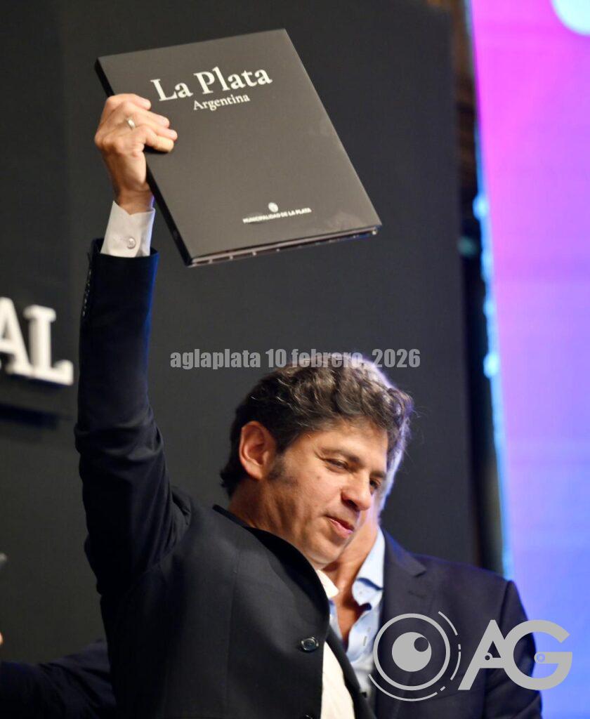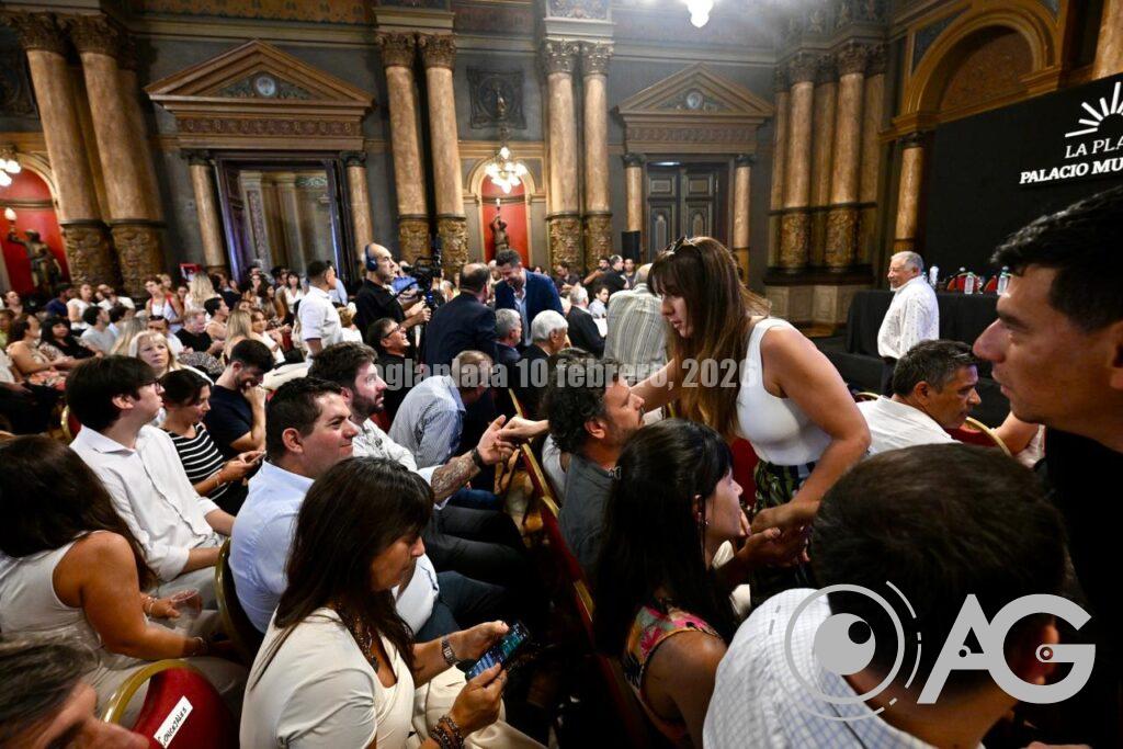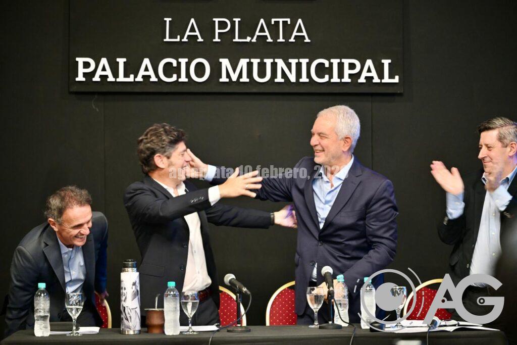 Axel Kicillof Encabeza el acto por la habilitación del Acueducto Norte en el marco del Plan Hídrico para el Gran La Plata en el Salón Dorado del Palacio Municipal junto al intendente, Julio Alak, y el ministro, Gabriel Katopodis.